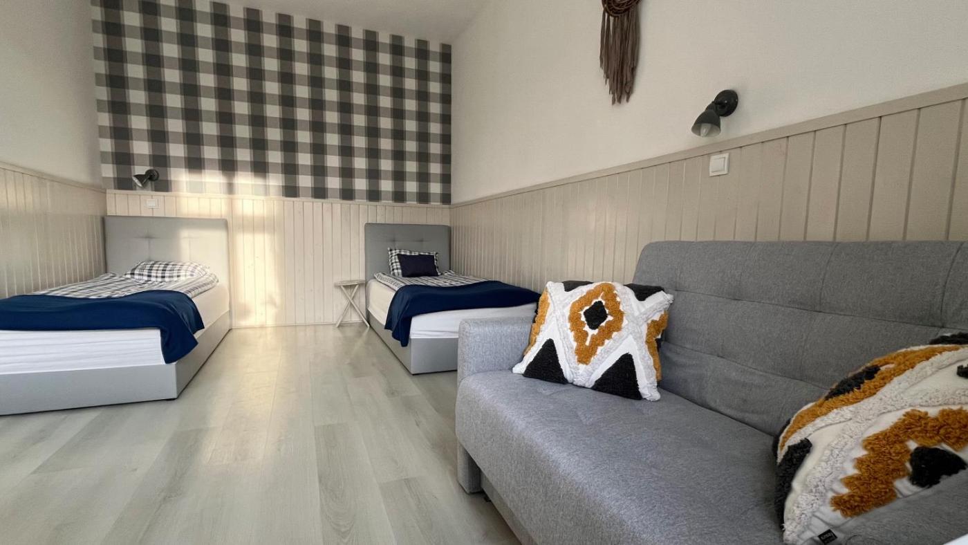 Pokój czteroosobowy typu Comfort. The quadruple room offers a tea and coffee maker, a dining area, a terrace with garden views as well as a private bathroom boasting a walk-in shower. The unit has 3 beds. Pokój Czteroosobowy - 4 osobowy. Powierzchnia pokoju ok.: 35 mkw. ;