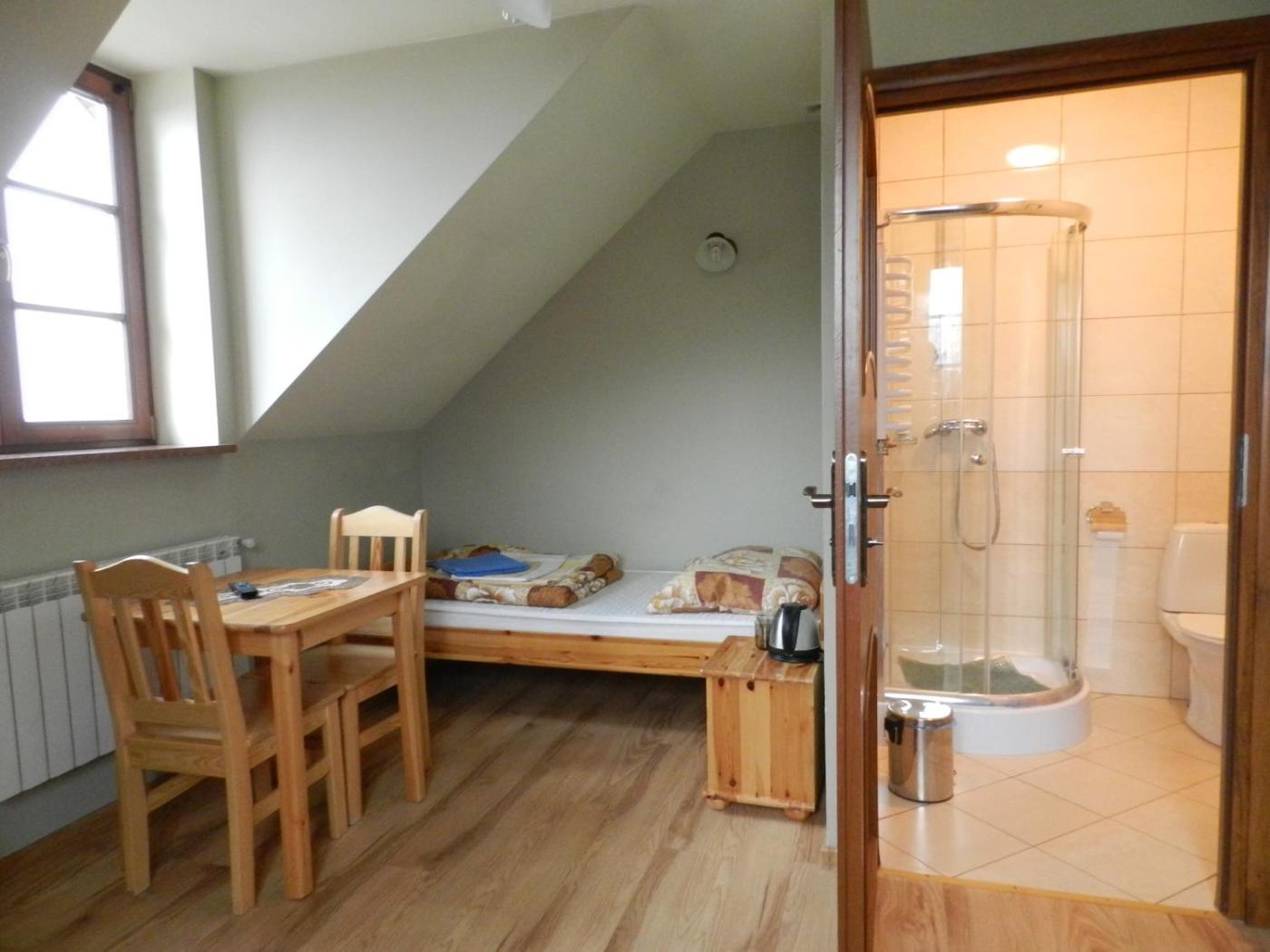 Pokój trzyosobowy. The triple room offers an electric kettle and heating, as well as a private bathroom featuring a shower. This triple room provides a flat-screen TV. The unit offers 3 beds. Pokój Trzyosobowy - 6 osobowy. Powierzchnia pokoju ok.: 18 mkw.