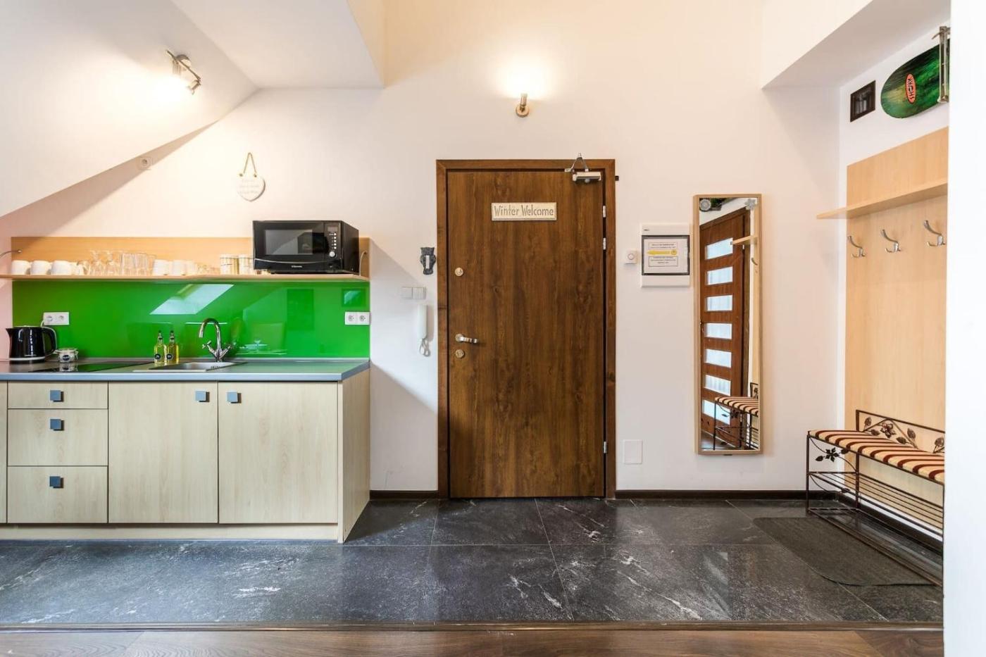 Apartament. This apartment features 1 living room, 1 separate bedroom and 1 bathroom with a shower and a hairdryer. In the well-equipped kitchen, guests will find a stovetop, a refrigerator, kitchenware and a microwave. Boasting a balcony with mountain views, this apartment also features an electric kettle and a TV. The unit has 3 beds. Apartament - 6 osobowy. Powierzchnia pokoju ok.: 36 mkw.