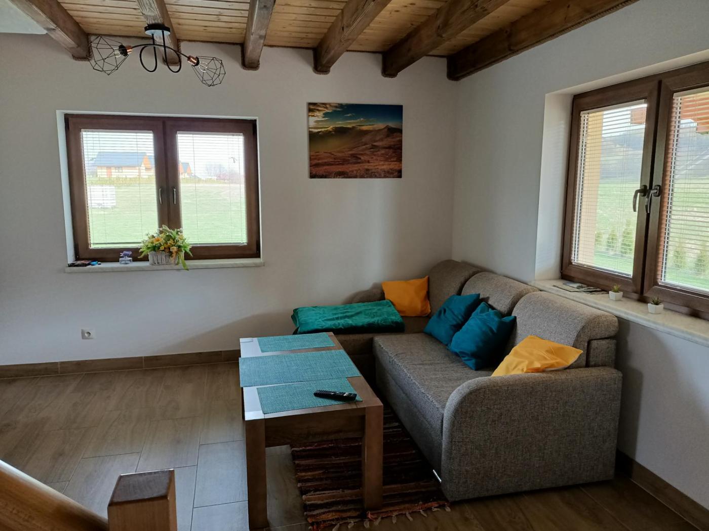 Domek z 2 sypialniami. The fireplace is a top feature of this chalet. Boasting 2 bedrooms, this chalet has 1 bathroom with a shower, a seating area and terraceyou can relax. Guests will find a stovetop, a refrigerator, kitchenware and a microwave in the well-equipped kitchen. The chalet also includes a barbecue. Featuring an outdoor dining area, this chalet also features a private entrance, a coffee machine and a flat-screen TV. The unit offers 4 beds. Domek - 5 osobowy. Powierzchnia pokoju ok.: 20 mkw.