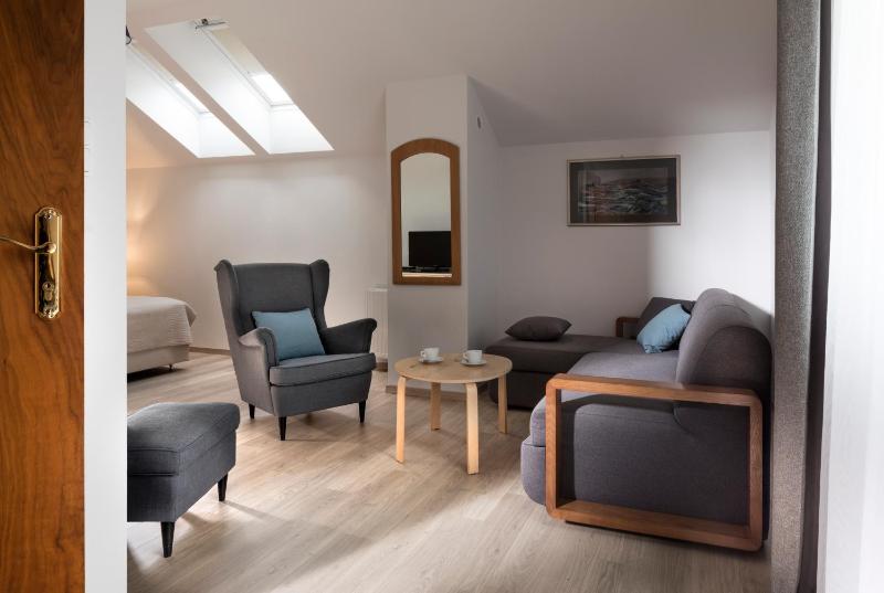 Pokój Dwuosobowy typu Deluxe. Featuring free toiletries, this double room includes a private bathroom with a walk-in shower and a hairdryer. The spacious double room features a private entrance, a tea and coffee maker, a seating area, a flat-screen TV with cable channels, as well as city views. The unit has 2 beds. Pokój Dwuosobowy - 3 osobowy. Powierzchnia pokoju ok.: 30 mkw. ;